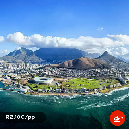 The Atlantico Scenic Flight promises an array of unique delights. Marvel the coastline of the sparkling Atlantic Ocean, and the turquoise waters of Camp’s Bay and Clifton beaches. Enjoy a birds eye view of the Cape Town Stadium, Karbonkelberg peak and the glorious Twelve Apostles.